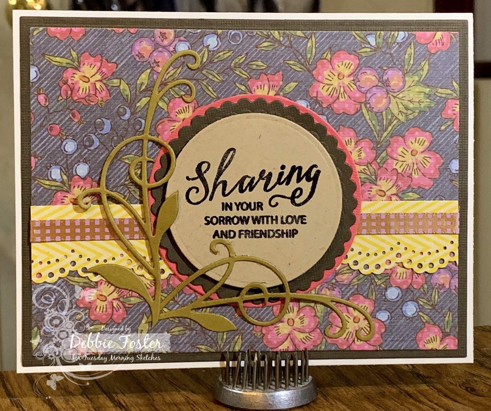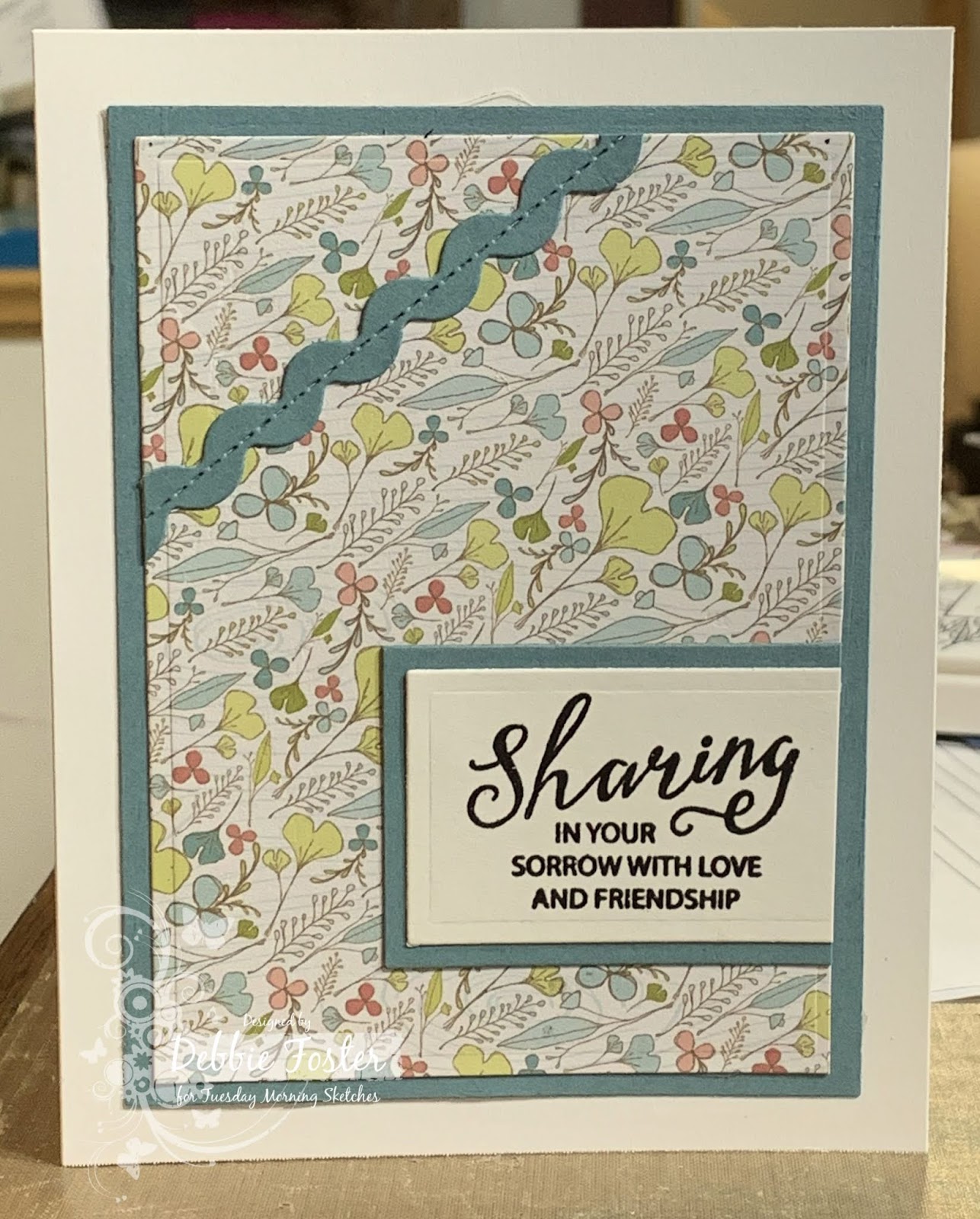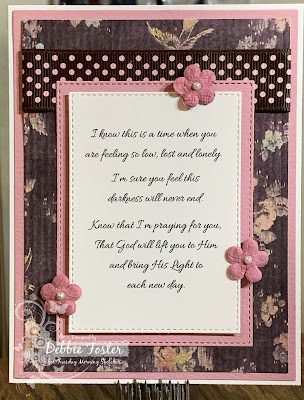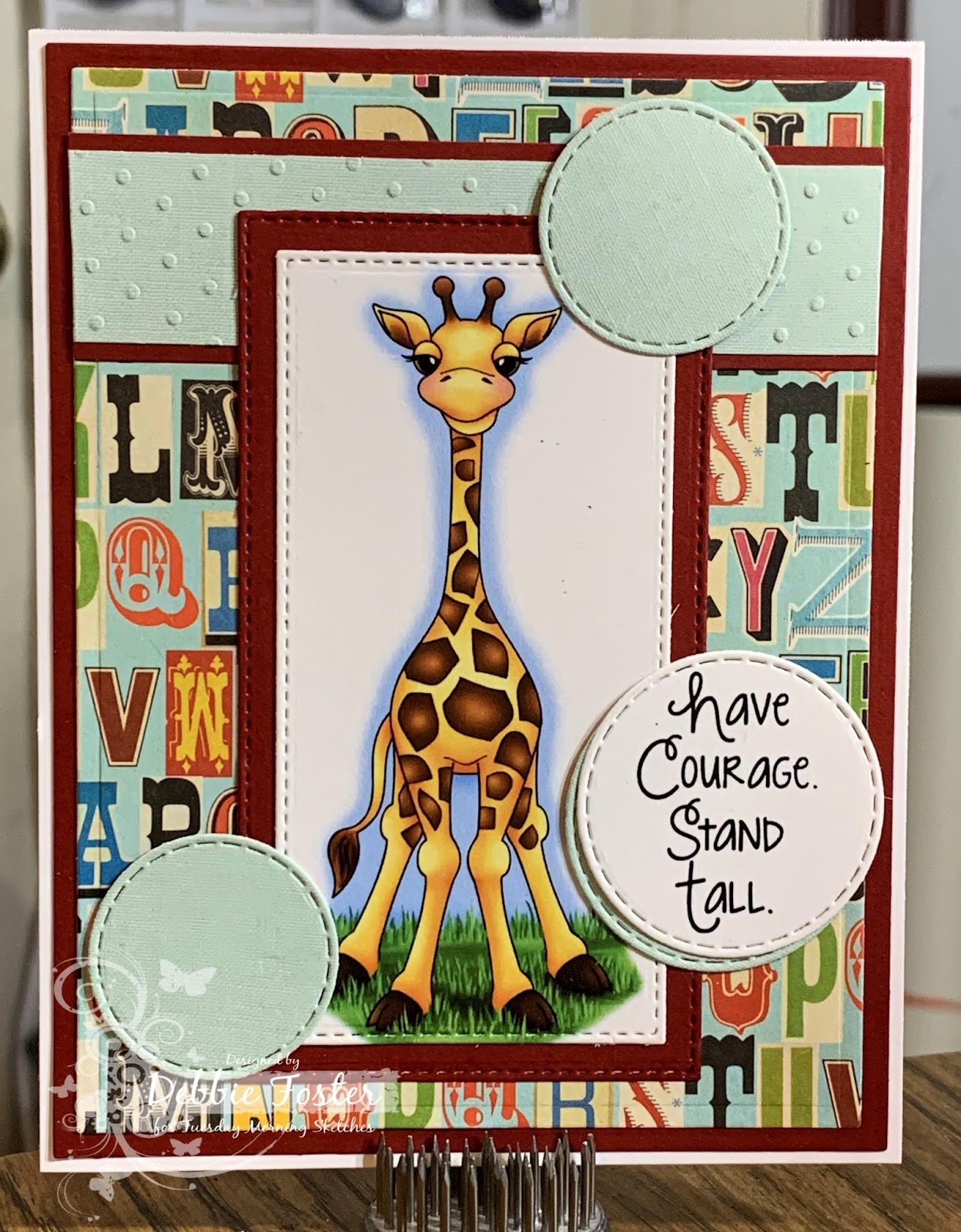 My image is a digi from Your Next Stamp. It was colored with Copics and fussy cut. The polka dot paper is Making Memories Just Chillin' and cut with Poppystamps Raining Frame. My sentiment is from Creative Worship Stamps Spring Blossoms. I finished it off with some twine, punched branches, and a flower from my stash.
