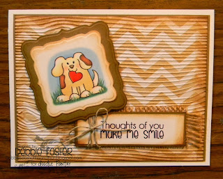 This card was inspired by this one I saw on Pinterest. Mine falls far short of that beauty, but I like it anyway. I think mine is more on the masculine side. Better ribbon and cord would help. Next time!