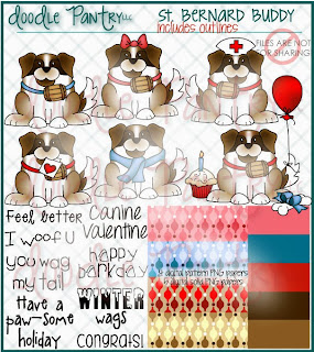 St Bernard Buddy. Aren't these doggies adorable??? I used the patterned and solid digi papers and the colored birthday dog.