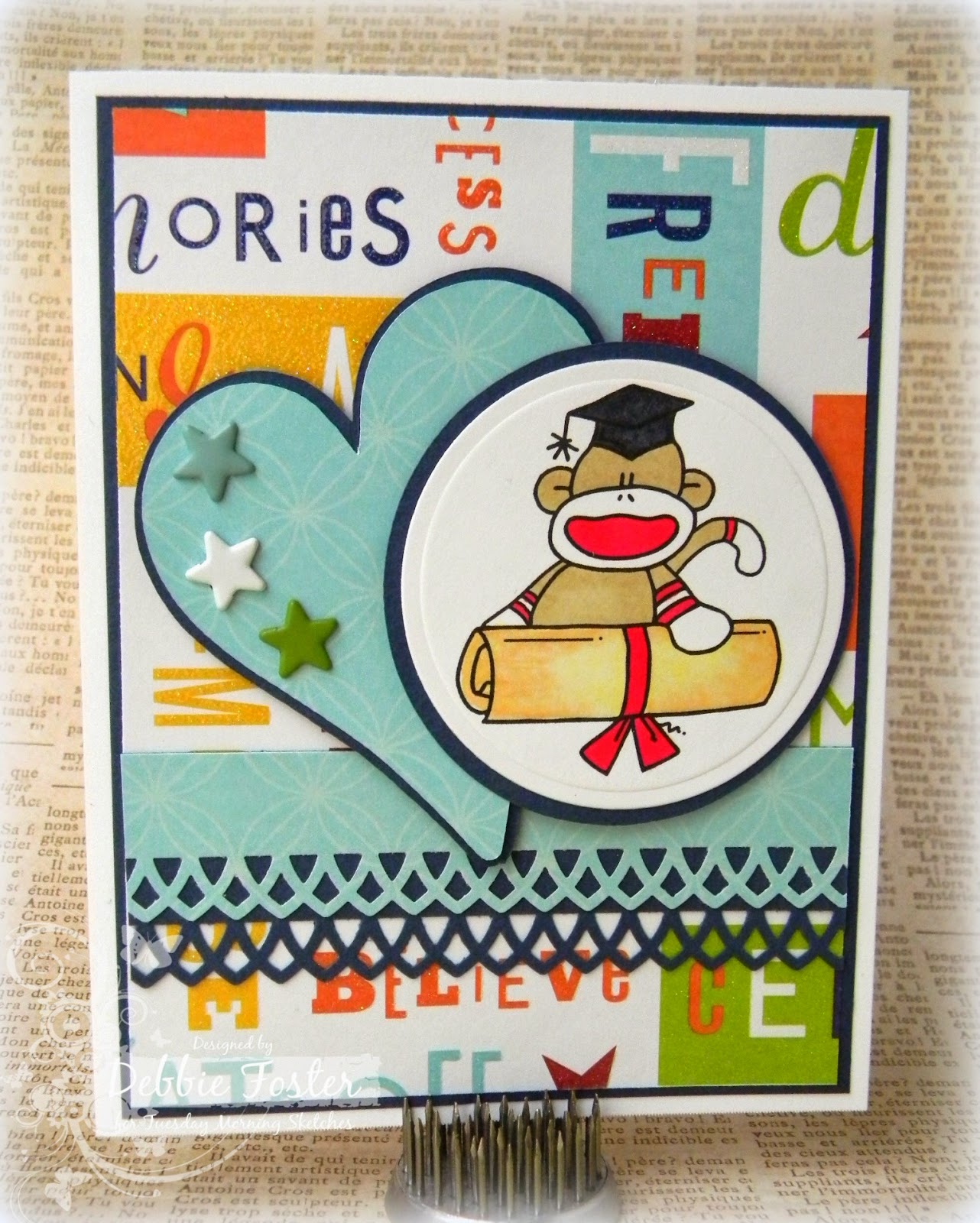 Hi! It's Tuesday and time for Tuesday Morning Sketches!! I'm having fun making grad cards and this week I have another one. This one is the best, I think, because I love sock monkeys!!! They are soooo cute! {I'll let you in on a secret... my hubby even bought me sock monkey pj's!! :) }