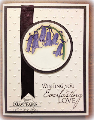 My image is English Bluebells from Doodle Pantry. The BG is embossed with CB Love Language. (FYI the matting and ribbon are both dark purple, not black as they almost look depending on your screen)