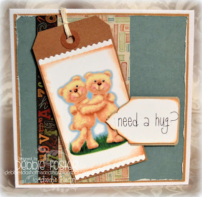 I have so many 6x6 pads that are mostly gone, so I'm trying to use up all the left over pages. These are from We R Memory Keepers "hall pass." My image is Big Bear Hug from Doodle Pantry. The tag is from Kraft Outlet.