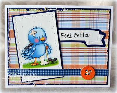 Isn't this birdie cute??!? I hope time flies for the recipient of this card and that this birdie cheers him up as he heals! This is for a young boy in our church who broke his leg. Poor little guy! His break required surgery and a pin. :(