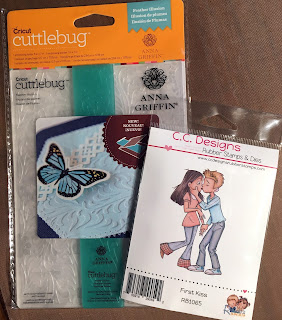 This week, Tuesday Morning Sketches is sponsoring with this prize... Cuttlebug Anna Griffin "Feather Illusion" EF and C.C Designs "First Kiss" rubber stamp.