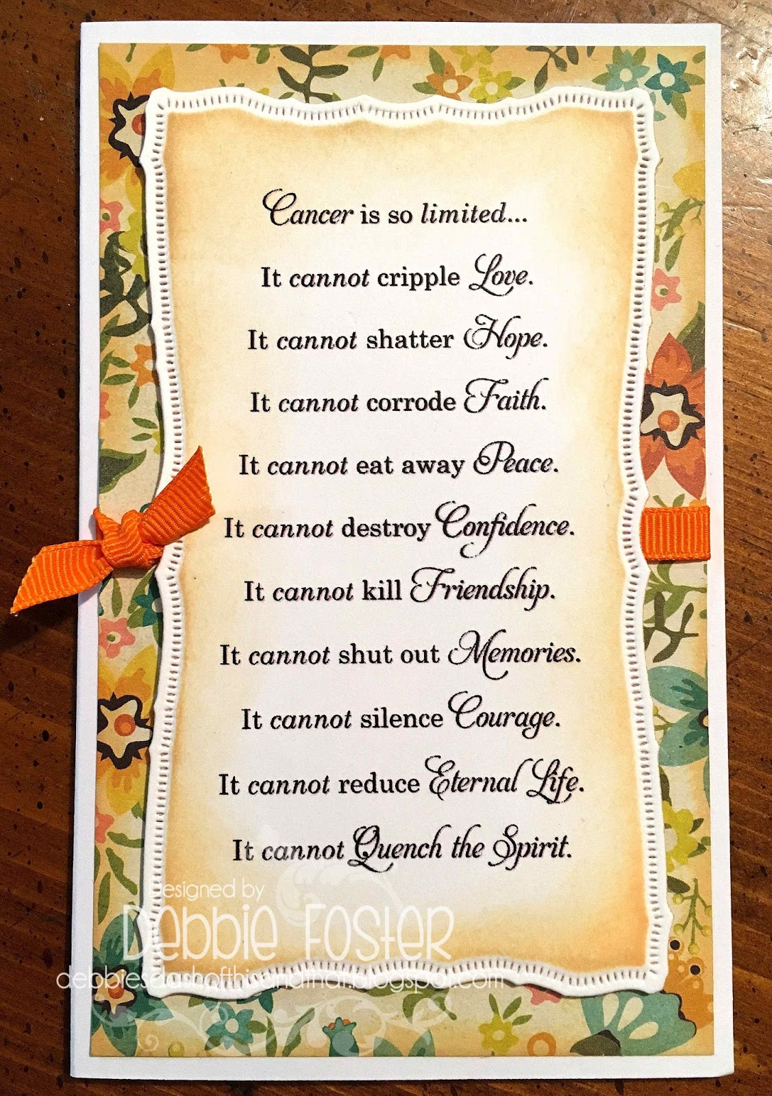 I've got a pretty card to share today, but I wish I never had to make this kind... it's for a friend battling cancer. This is actually the third card like this that I have made and sent recently. :(