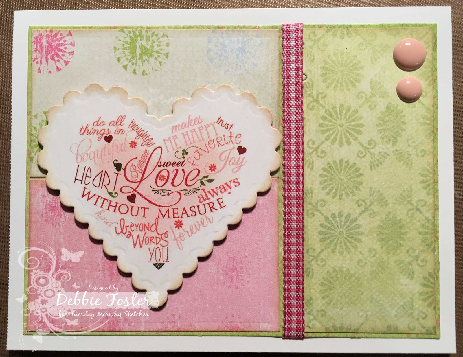Happy Tuesday to you! It's time for Tuesday Morning Sketches!! This week, I've got 3 cards to show you using our sketch. 3!!! I've been away 3 1/2 of the past 6 weeks, so I had a brain fart last week and threw my card together thinking I needed it ready before I actually did. Then when I realized I had more time, I made another. While working on another project, I was inspired to try something else, so... 3 cards with this sketch. :) I'll show you the third and final product first. (It's my favorite of the 3.)