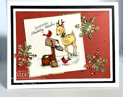 This was among my printed-and-waiting stash, and I cannot seem to find who it is from. My DP is the Paper Studio Country Road. The ric rac is My Favorite Things Stitched Ric Rac die. The ovals are cut using Cross Stitched Ovals from Cheapo Dies. I finished it off with Recollections adhesive dots.